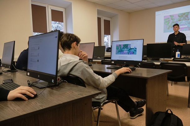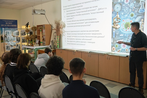 9 октября в Институте цитологии и генетики СО РАН вновь распахнула свои двери для школьников Новосибирска «Мастерская ученого-генетика». В этот день для гостей мероприятия младший научный сотрудник сектора биоинформатики и информационных технологий в генетике ИЦиГ СО РАН Дмитрий Каретников прочитал лекцию «Современная биоинформатика и искусственный интеллект: методы, подходы и практическое применение в задачах биологии и медицины». На лекции обсудили современные подходы в биоинформатике и применение искусственного интеллекта для решения практических задач — от медицинских исследований до сельского хозяйства. Особое внимание было уделено алгоритмам полногеномного анализа ассоциаций, а также технологиям моделирования трехмерной структуры белков и их последующему анализу. После лекционной вводной части школьники смогли закрепить полученные знания об использовании технологий искусственного интеллекта в научных исследованиях на практике в ходе специального мастер-класса, где участники познакомились с современными инструментами и методами, применяемыми для моделирования и анализа белковых структур.
