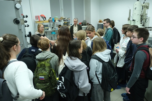 После лекционной части гости Института отправились на экскурсии по лабораториям, где им более наглядно показали научные эксперименты. Такие мероприятия оказываются полезны не только школьникам, но и самим ученым. Для молодых исследователей — это возможность попробовать себя в роли популяризаторов науки, научиться рассказывать о сложных вещах простым языком и заявить о своей работе широкой аудитории.